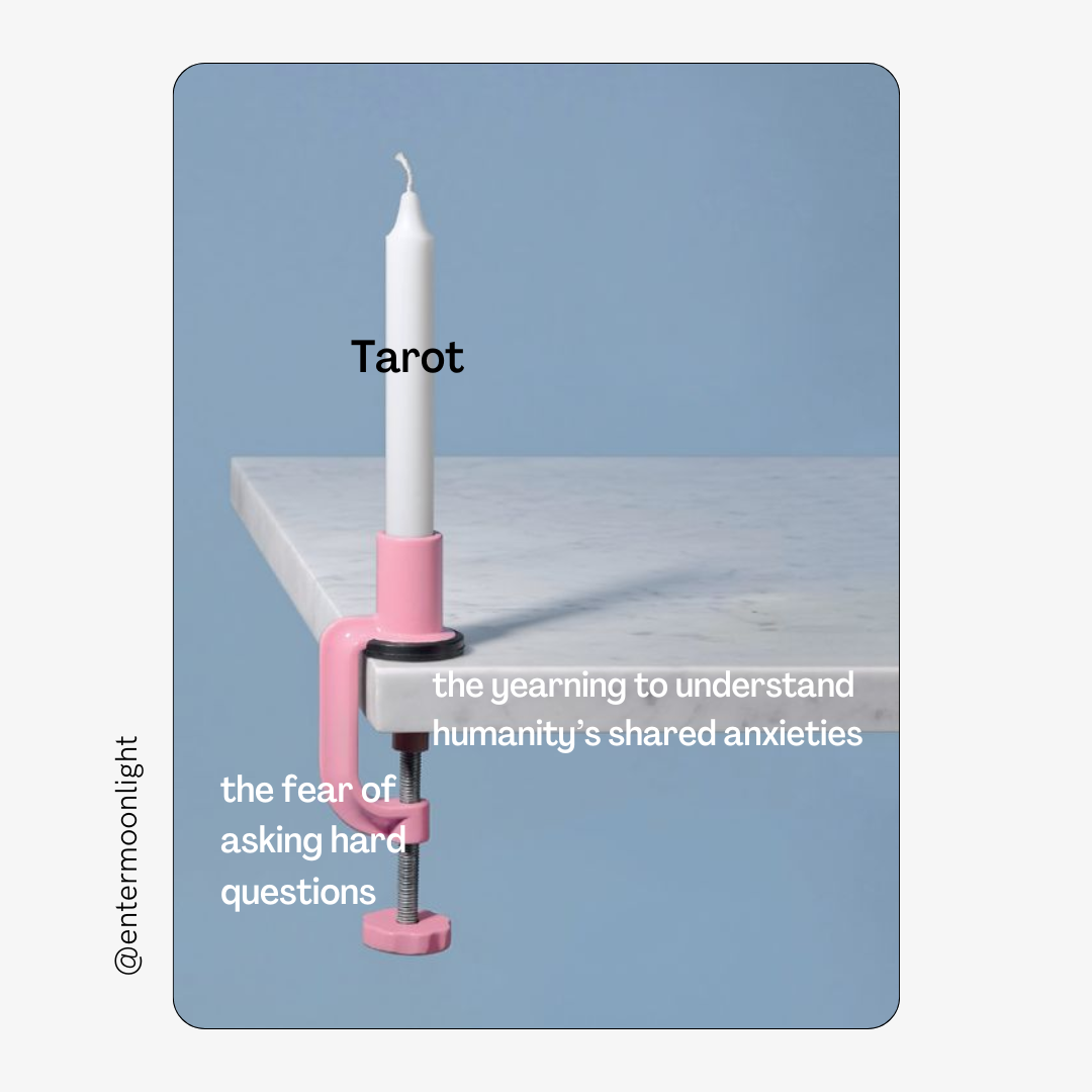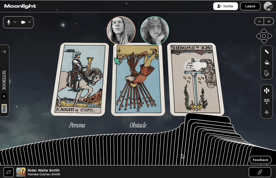 If you're curious about getting an online tarot reading on Moonlight, amazing! Tarot isn't all about divining your future—or the stereotypical "love and money." Tarot has the power to illuminate so many aspects of your life, projects, or situations—from the profound to the mundane. It's a collaborative conversation where you discover epiphanies together. I like to think of a tarot reading as a roleplaying game, where you map out scenarios in your life and the world.
