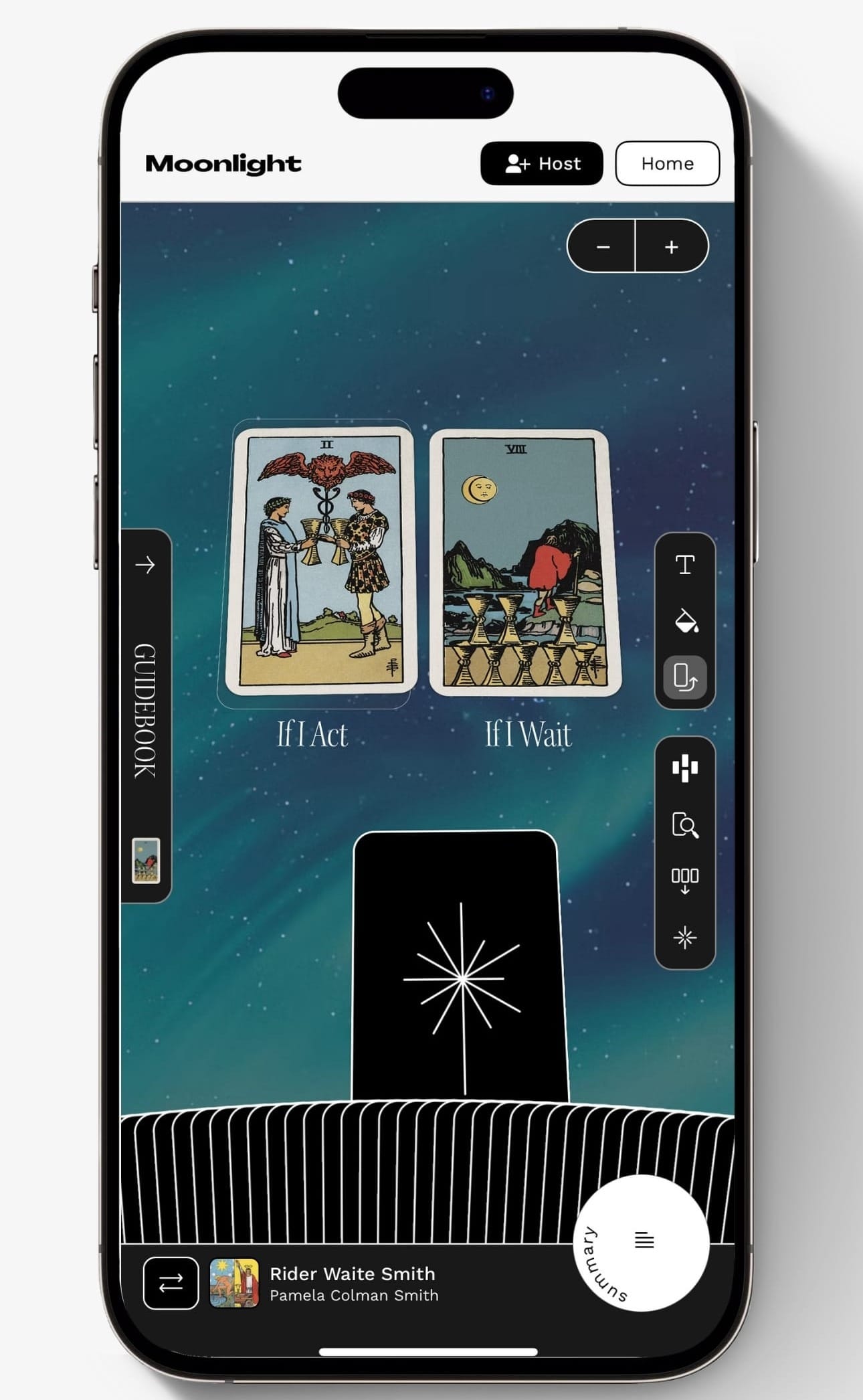 Available on iPhones and iPads as Moonlight: Interactive Tarot.